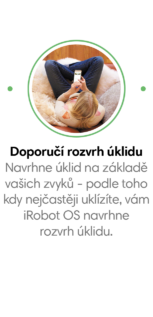 Přizpůsobte si úklid tak, aby odpovídal vašemu neustále se měnícímu plánu. a to pomocí personalizovanějších návrhů než má kterýkoli jiný robot. iRobot OS se učí vaše zvyky a dává doporučení, která přesně zapadají do vašeho životního stylu – to vše proto, abyste se mohli vrátit domů uklízet, aniž byste museli úklid vidět.