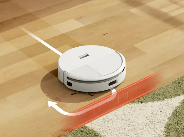 Senzory umístěné na spodní části robota dokáží bezpečně rozeznat volný prostor pod robotem, a tím zcela vyloučit možnost pádu ze schodů. Robot se zastaví, hezky otočí a pokračuje dál v úklidu s pevnou půdou pod kolečky.