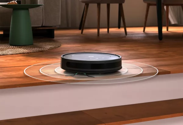 Senzory umístěné na spodní části robota dokáží bezpečně rozeznat volný prostor pod robotem, a tím zcela vyloučit možnost pádu ze schodů. Robot se zastaví, hezky otočí a pokračuje dál v úklidu s pevnou půdou pod kolečky.