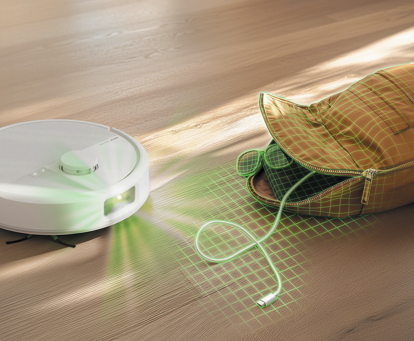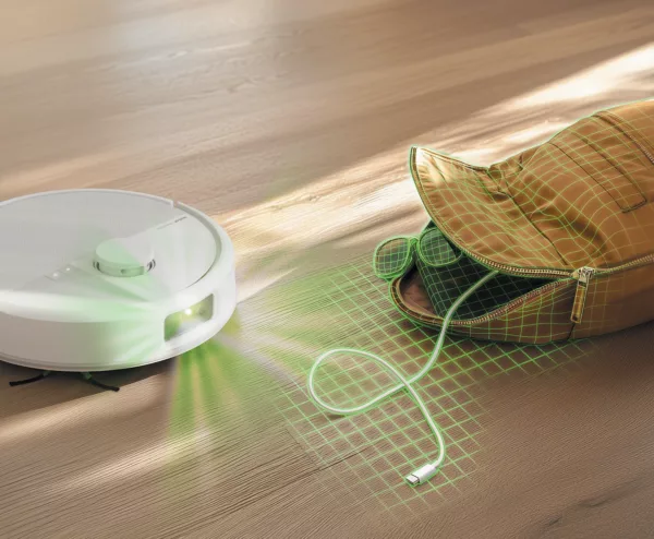 Senzory umístěné na spodní části robota dokáží bezpečně rozeznat volný prostor pod robotem, a tím zcela vyloučit možnost pádu ze schodů. Robot se zastaví, hezky otočí a pokračuje dál v úklidu s pevnou půdou pod kolečky.