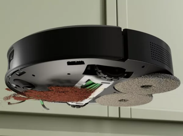 Robot umí zároveň vysávat i vytírat. Ke sběru nečistot je zde 1 kartáč a sběrný koš a ke stírání slouží nasazovací podložka a nádržka na vodu.