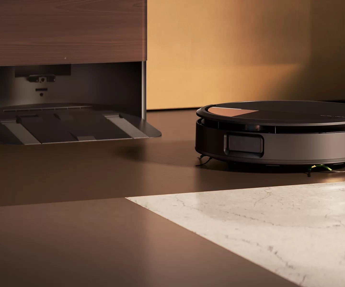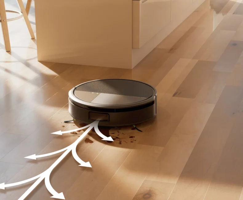 Pokročilá AI okamžitě identifikuje kabely, ponožky či nepořádek po mazlíčcích a elegantně se jim vyhne. Robot navíc rozlišuje mokré a suché nečistoty.
